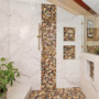 If the design features a curbless shower, it means no step up and no barrier to navigate. This design is especially helpful for those planning to age in place or who simply want an easier, safer way to enter and exit the shower. The seamless flooring improves accessibility without making the space look clinical.
