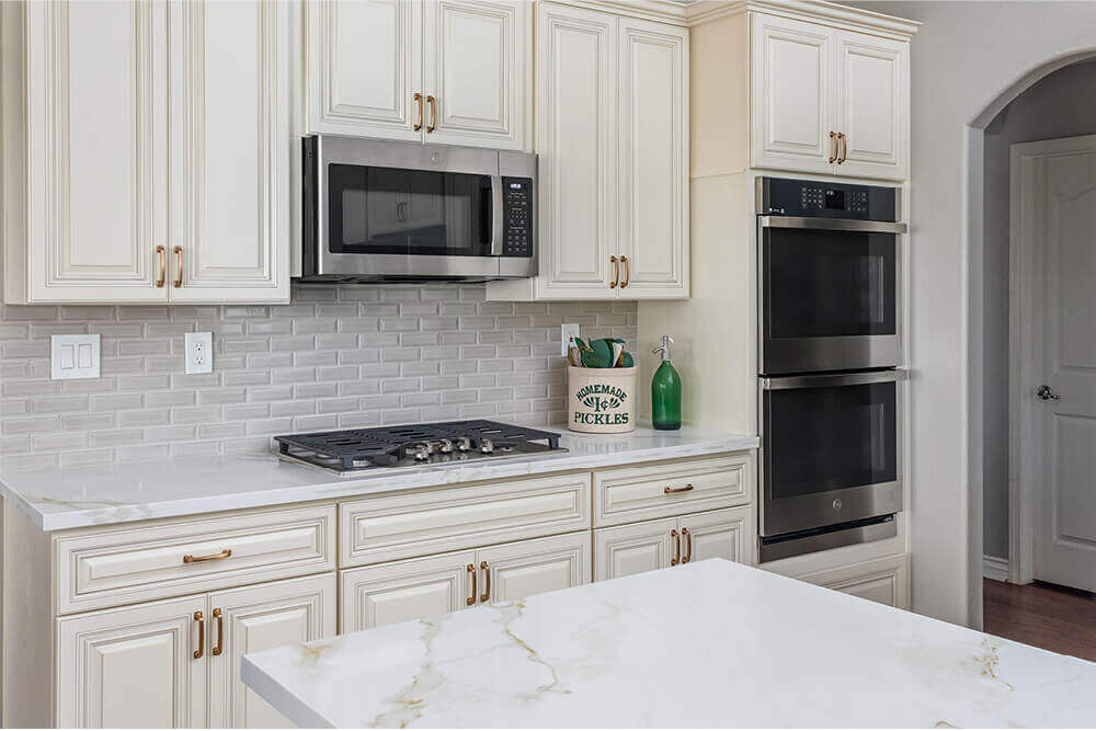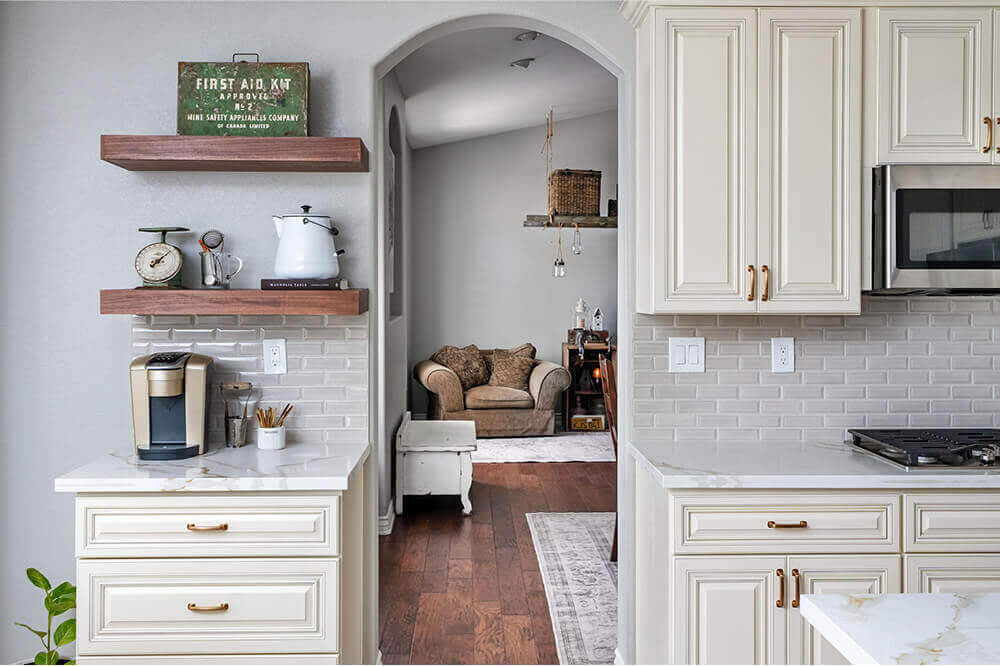 The homeowner had never been fond of the kitchen that came with her home. It felt closed off, dated, and lacked the space to comfortably accommodate more than one person at a time—especially challenging with two young children in the household. She wanted a larger prep area and a more functional layout while staying true to her personal style. A passionate collector of antiques, she envisioned a kitchen that would reflect her love for vintage charm while still feeling fresh, calm, and updated.