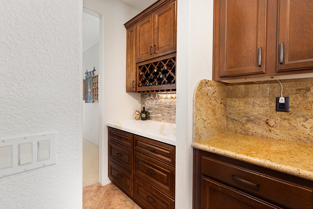 Our homeowner was ready for a kitchen update but did not want the expense or disruption of a full remodel. He loved his existing countertops and wanted to keep them intact. At the same time, an underutilized butler’s pantry presented an opportunity to create a dedicated bar area for entertaining. The goal was to elevate both spaces while being mindful of cost, materials, and what could be reused.